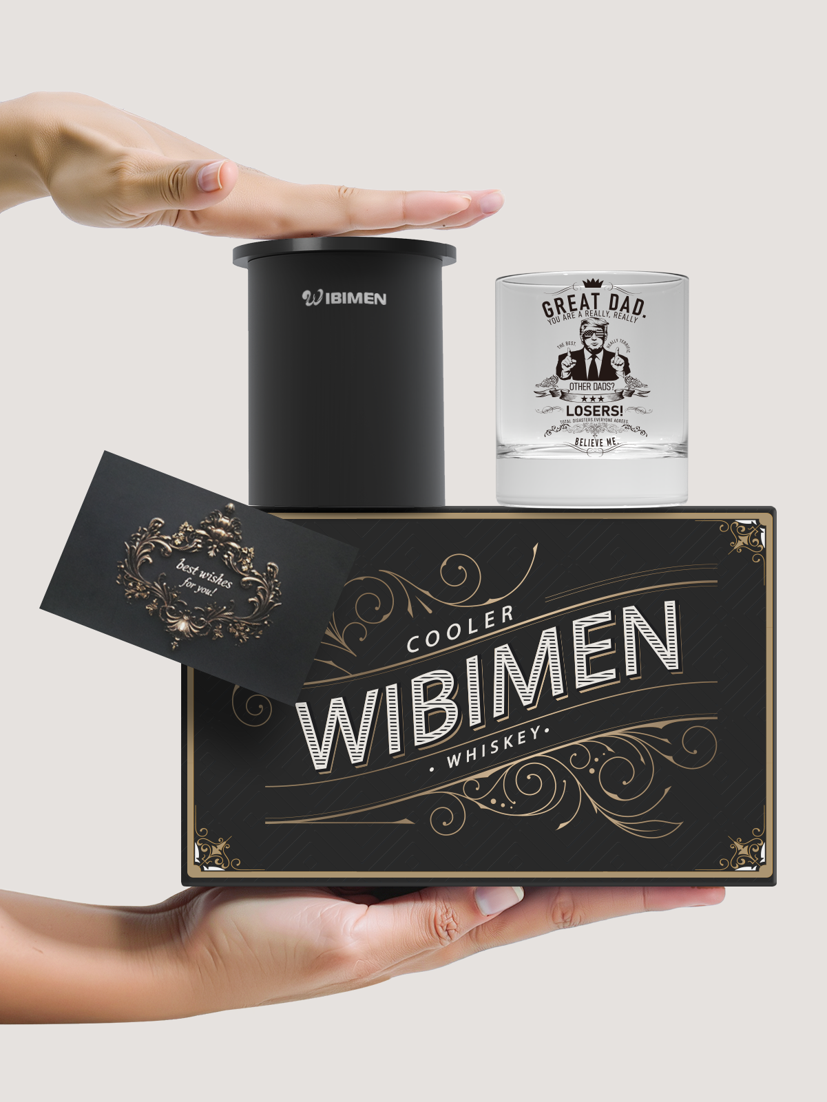 WIBIMEN Whiskey Ice Cubes Mold Set for Men, Dad, Husband, Men’s Gifts Set with Whiskey Glass, Clear Ice Cube Maker, and Greeting Card, Bourbon Gifts for Men,Old Fashioned Glass Set for Father