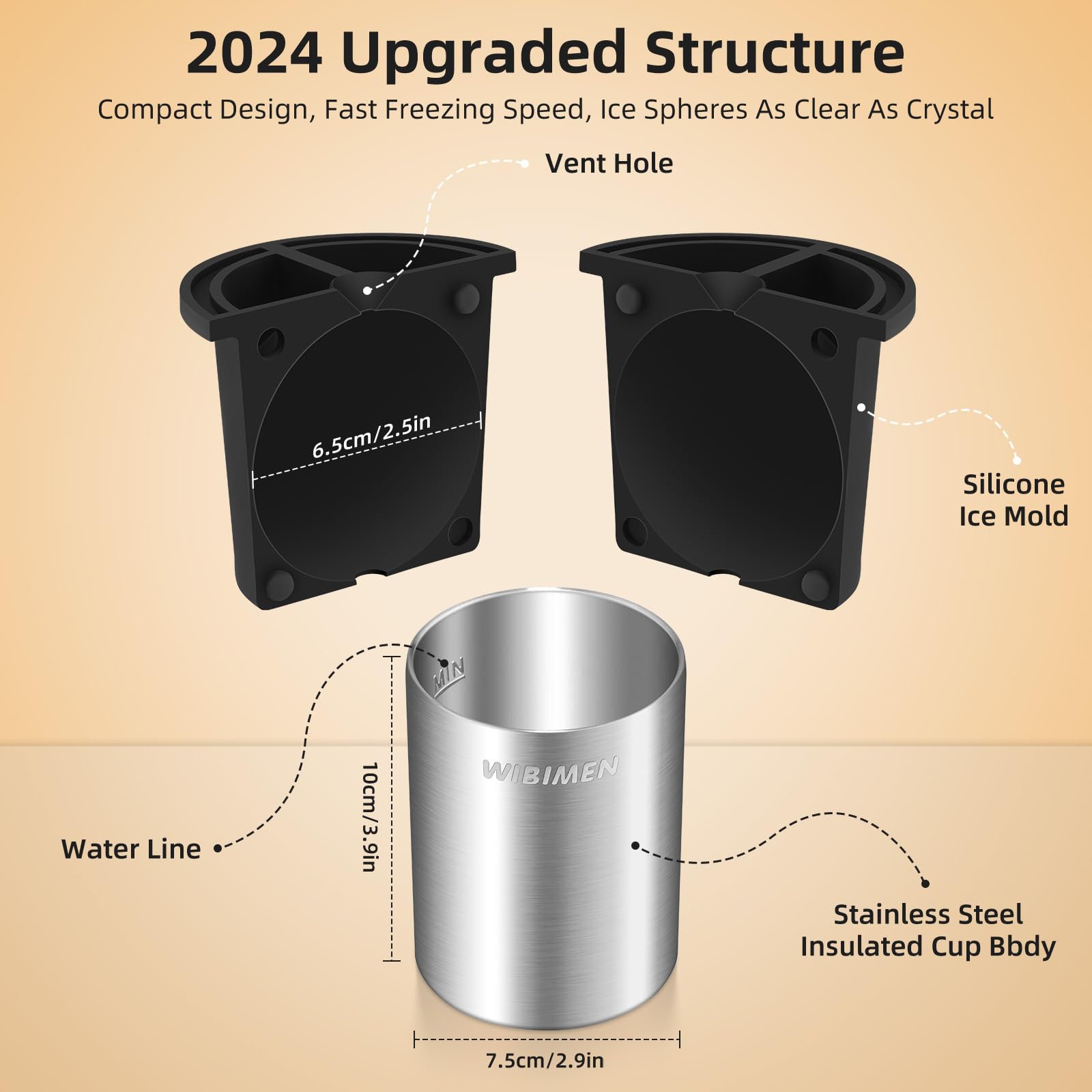 Patented Clear Ice Cube Maker - 2.5" Ball - Stainless Steel - Compact Design - for Whiskey, Cocktail, Bourbon